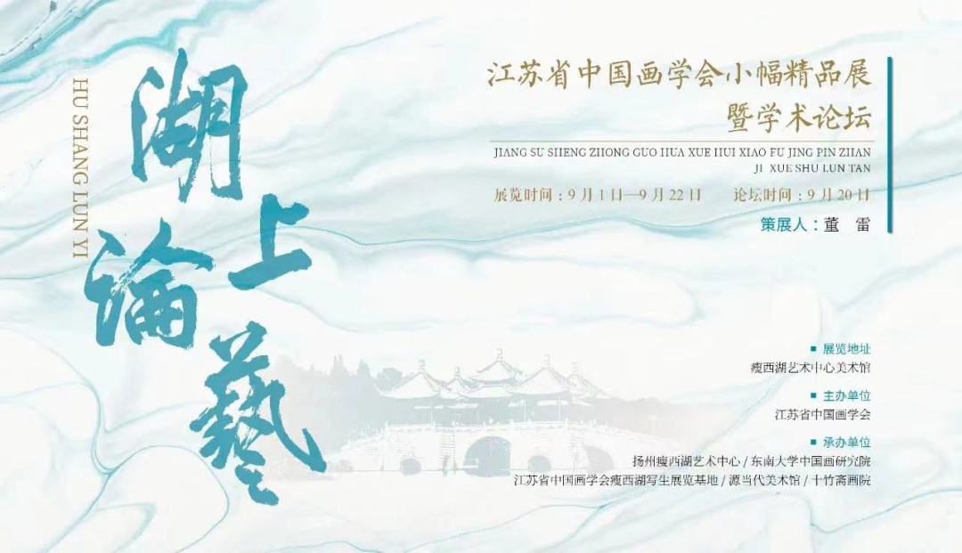 9月1日,由江苏省中国画学会主办,扬州瘦西湖艺术中心、东南大学中国画研究院、江苏省中国两学会瘦西湖写生展览基地、源当代关术馆、十竹斋画院承办的“湖上论艺——江苏省中国画学会小幅精品展”在瘦西湖艺术中心美术馆开幕。