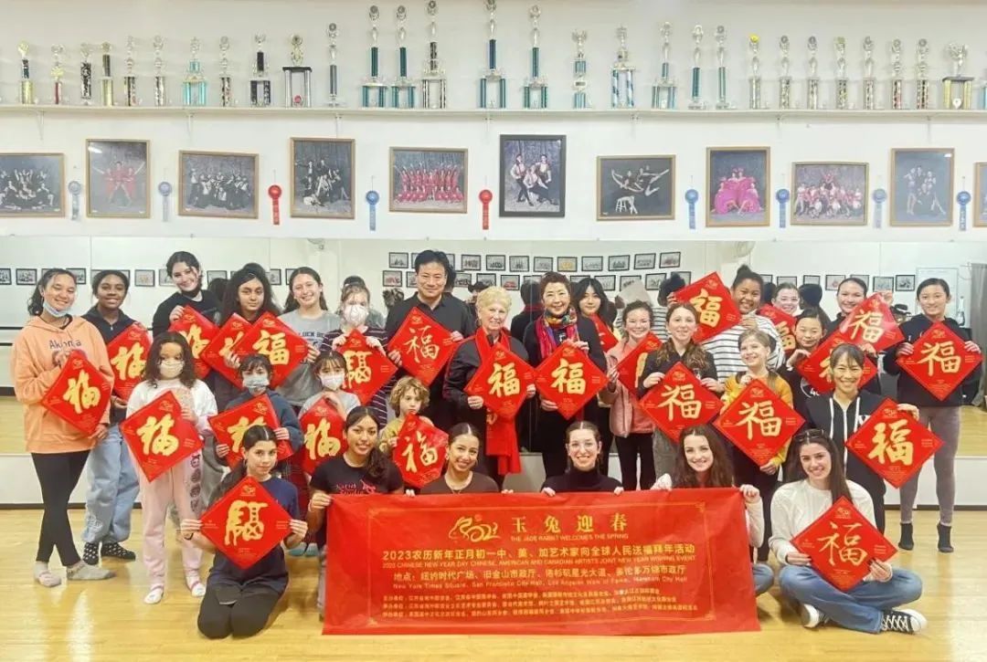 1月19日,玉兔迎春—庆祝2023农历新年中美、加艺术家送福拜年活动走进旧金山凯蒂斯舞蹈学校送福拜年。