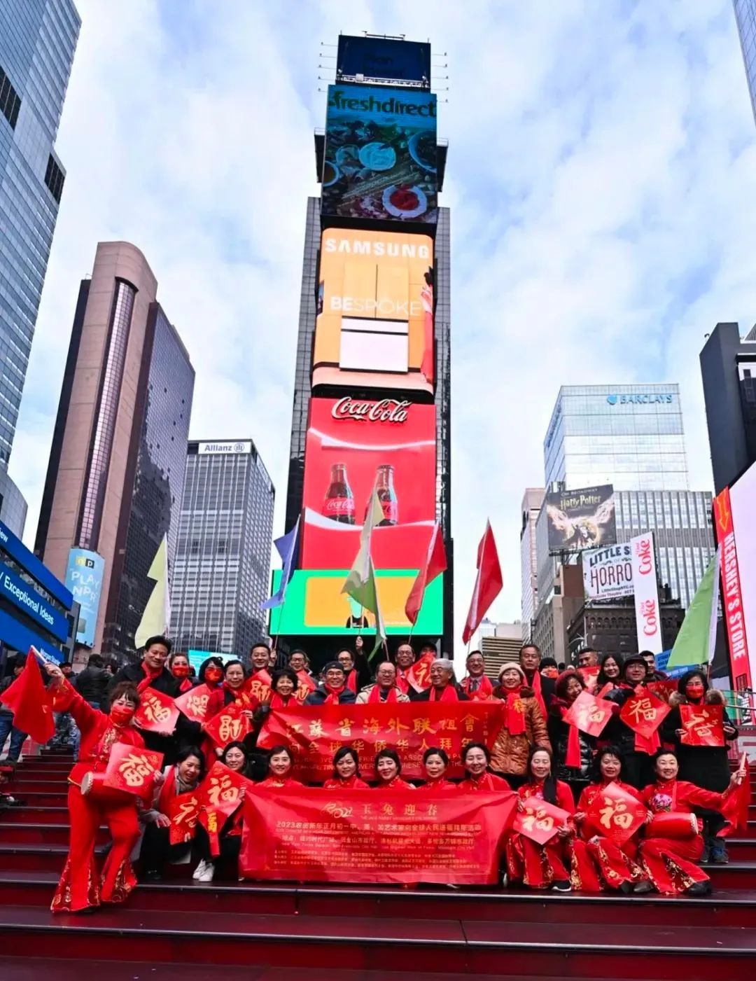 纽约时代广场举行“玉兔迎春—庆祝2023农历新年中、美、加三国艺术家举行送福拜年活动”