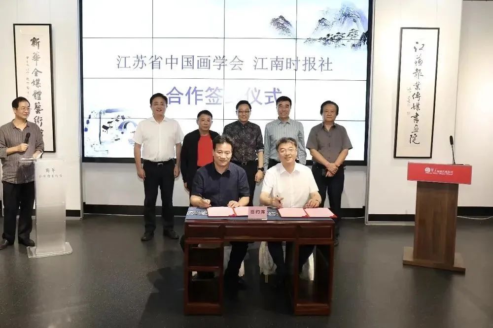 9月15日下午,江苏省中国画学会与江南时报社在新华全媒体艺术馆签署框架合作协议。