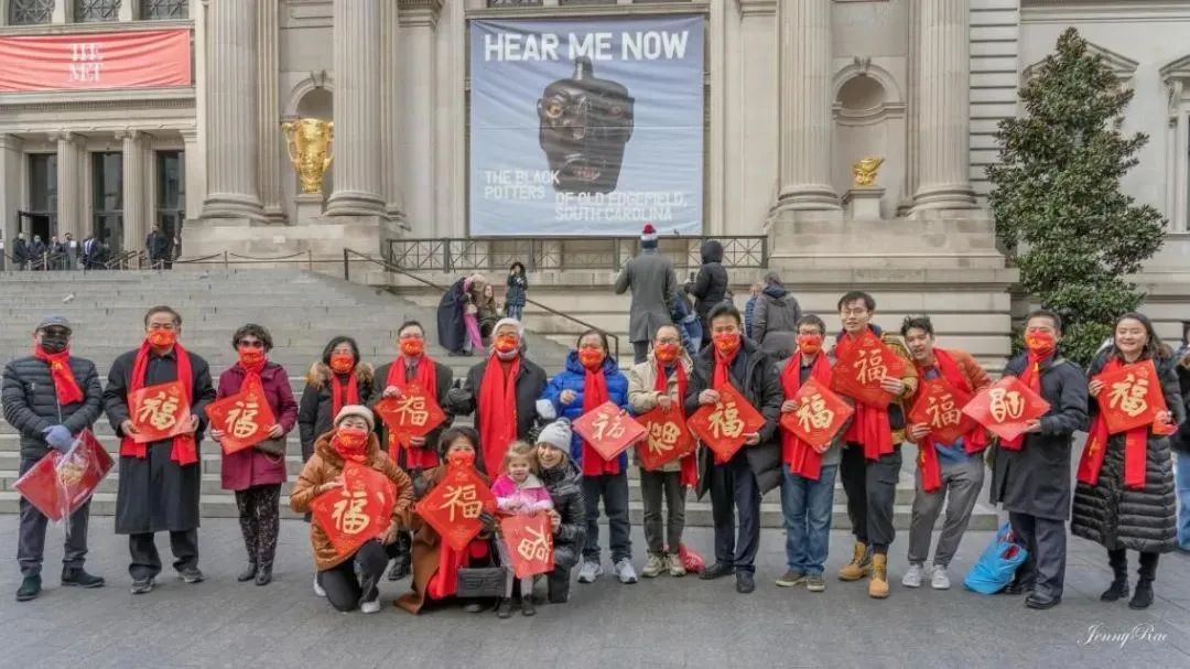 1月24日,玉兔迎春—庆祝2023农历新年中美、加艺术家送福拜年活动走进纽约大都会艺术博物馆送福拜年。