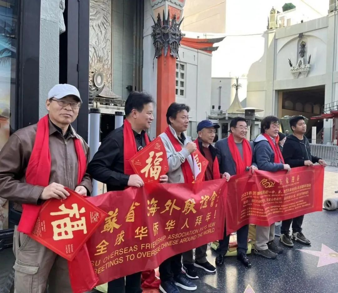 1月19日,玉兔迎春—庆祝2023农历新年中、美、加三国艺术家举行送福拜年活动走进洛杉矶好莱坞送福拜年。