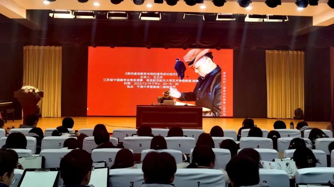 12月18日下午,由江苏省中国画学会主办,南京市宁海中学承办的"立美育人《高校速写教学与我的速写成长经历》—江苏省中国画学会常务理事,南京航空航天大学艺术学院王立庆教授艺术讲座”在宁海中学塑美楼礼堂举行。