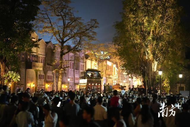 中秋夜,漫步长堤历史文化街区的市民游客。南方+记者 杨兴乐 摄