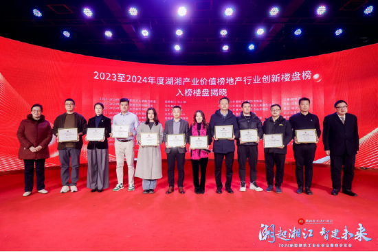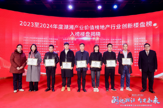 “为中部产城引奏时代涛声,为人居理想奉献湖湘智慧,为品牌崛起注入创新力量……”,晚宴现场,2023-2024年度湖湘产业价值榜盛大发布。
