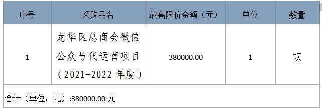 根据《深圳市龙华区总商会采购管理办法》的有关规定,参照《中共深圳市龙华区委统一战线工作部采购管理办法(试行)》,深圳市龙华区总商会微信公众号代运营项目(2021-2022年度),采用网上公开征集选取供应商的方式实施采购,欢迎符合资格的供应商参加。