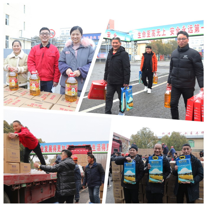 收获大奖,再来礼品送给你。1月31日,在该矿工业广场,两辆满载大米和色拉油的货车缓缓停止。“感谢大家这一年来的辛苦努力,年关将近,预祝大家新年快乐,阖家欢乐、幸福安康。”发放现场,该矿工会工作人员一边登记货物,一边向大家拜年。各科室、区队职工陆续前来,一箱箱大米、一桶桶色拉油被职工领取,现场热情高涨,欢声笑语彼此起伏,洋溢着浓浓的节日氛围。