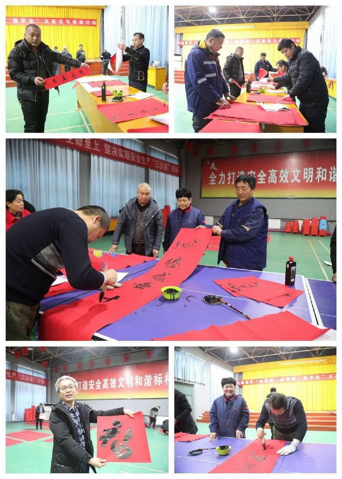 福到春来早,义写送平安。1月31日,在该矿文体中心,同时开展“迎新春、送祝福、保平安”义务写春联活动,为全矿干部职工送去春联和新春的祝福。