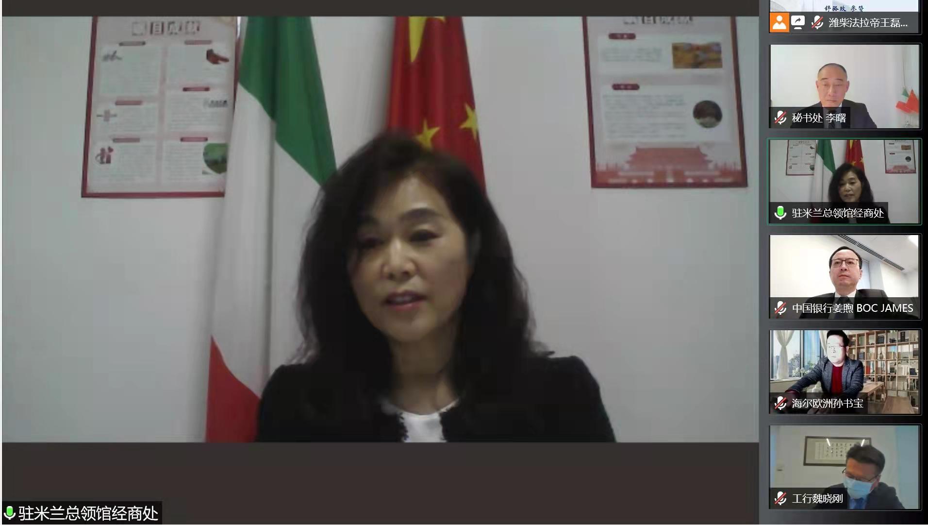 12月22日,意大利中国商会在线上举办首届年会,会长姜煦作2021年工作总结和2022年展望并通报商会财务工作情况,候任会长魏晓刚、意大利投资促进署(Invitalia)有关负责人Tabella致辞,联合圣保罗银行宏观经济分析师Mezzomo、大成律师事务所白君毅律师分别就意宏观经济形势和“黄金权力”及应对作专题讲座。舒骆玫参赞应邀出席并致辞。
