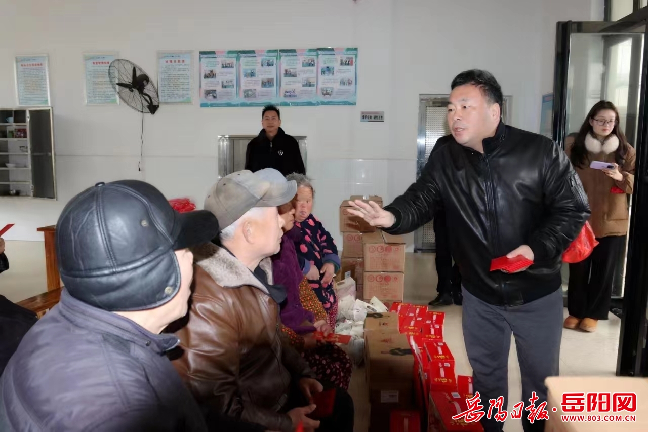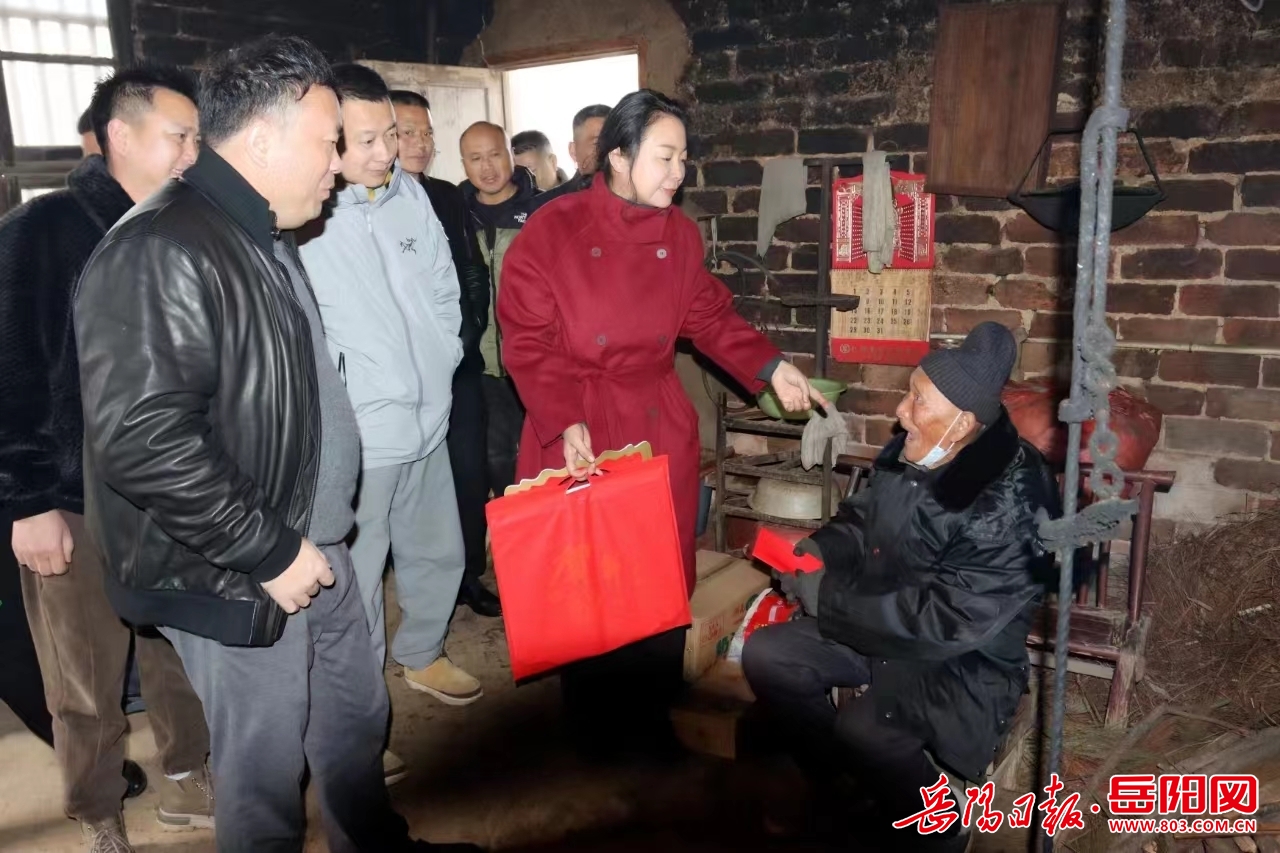 岳阳日报全媒体讯(记者 彭扬飞 通讯员 姚军良 )岳阳县柏祥镇商会为弘扬中华民族敬老爱老的传统美德,让老人们感受社会的关爱和新春佳节的喜庆气氛,近日,在名誉会长许国勇、执行会长刘江的带领下,前往敬老院开展新春“微心愿”慰问活动,并为每位老人送上新春大礼包。柏祥镇党委书记黄静参加活动,并看望全镇106岁的最长寿老人刘静明。