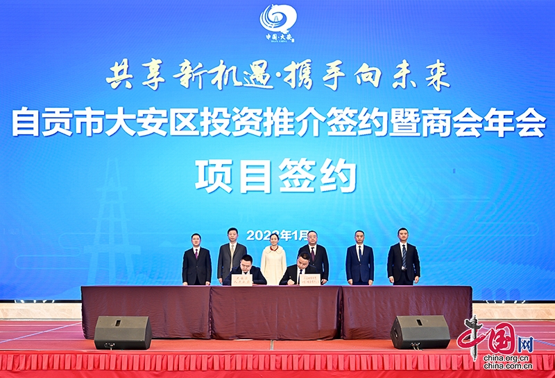 1月19日,自贡市大安区举行“共享新机遇·携手向未来”投资推介签约暨商会年会。自贡市政府副市长韩明祝出席并讲话。自贡市政府副秘书长赵颖红,市工商联主席、总商会会长杨荣春,市商务局局长秦川,市投资促进局局长邓翼川出席会议并见证签约。大安区委书记彭长林出席并致辞,区委副书记、区政府区长唐小华作大安区投资环境及项目推介,区人大常委会主任肖永忠,区政协主席关义彬出席。区委副书记邹勇主持会议。