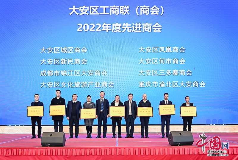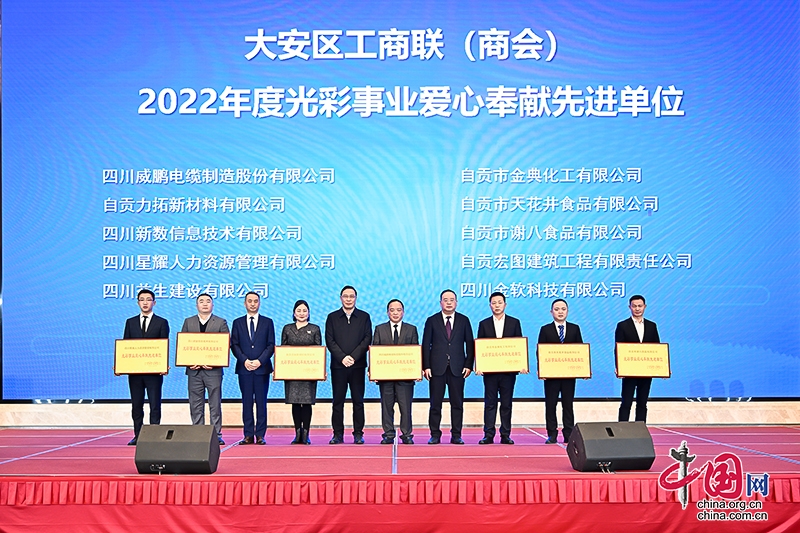 会上宣读了《关于表扬大安区商会发展奖、光彩事业爱心奉献先进单位、先进商会、优秀会员企业、优秀秘书长及企业办公室先进个人的决定》,并进行颁奖。