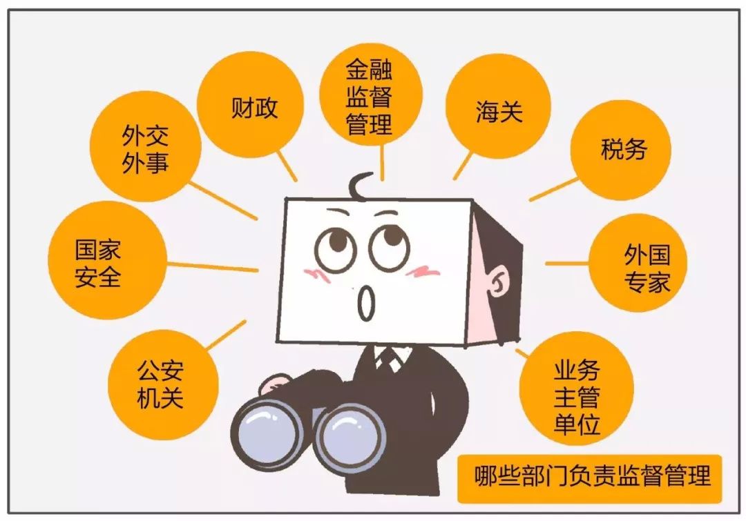 第四十三条 国家安全、外交外事、财政、金融监督管理、海关、税务、外国专家等部门按照各自职责对境外非政府组织及其代表机构依法实施监督管理。