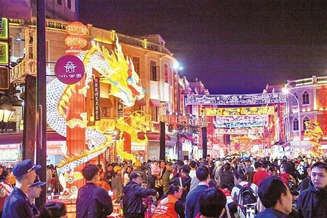 在小公园核心区的5条街道,满满的侨乡“国际范”扑面而来,主办方选取新加坡、马来西亚、泰国、柬埔寨、阿联酋5个潮汕华侨聚居国家的标志性建筑和特色物产,设计主题特色花灯,打造特色异国风情街。此外,活动还嵌入灯会集市、古风巡游、非遗体验、元宵灯谜、舞龙、英歌展演等沉浸互动环节,全面展示汕头浓厚的历史底蕴和独特的民俗文化。