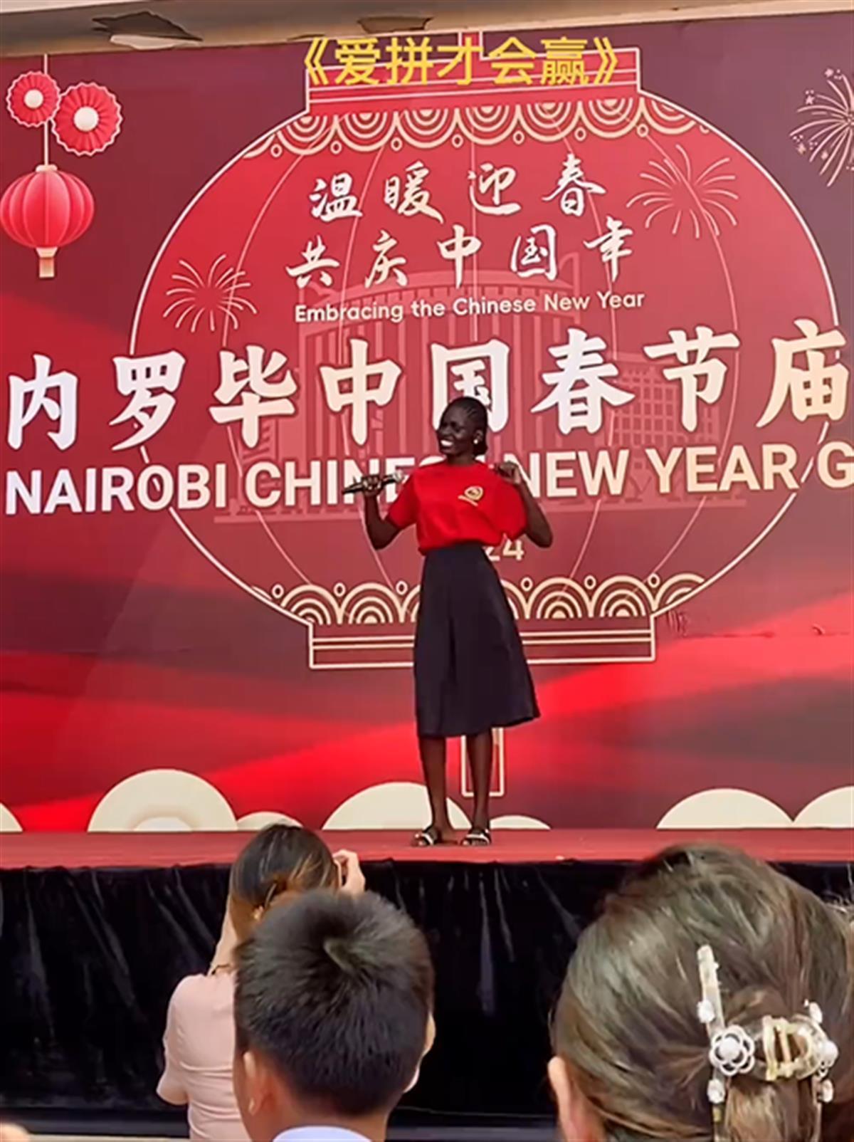 肯尼亚小姐姐表演《爱拼才会赢》(受访者供图)