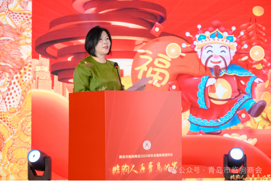 山东省潍坊市市委常委、中共临朐县县委书记刘艳芳致辞。刘书记首先代表家乡93万父老乡亲向大家拜年,并向长期以来关心支持家乡发展的各级领导、各界朋友,表示衷心的感谢!刘书记向各位老乡汇报了家乡的发展情况,这几年,家乡的综合实力越来越强,家乡的城乡面貌越来越靓,家乡群众的生活水平越来越高,家乡的口碑形象越来越好,“临朐本来就好、越来越好、一定更好”已成为各界共识,真正实现了临朐对外形象的重构重塑。其次肯定了青岛市临朐商会秉承“服务青岛、服务临朐、服务会员”的宗旨,为家乡经济建设和社会发展作出的突出贡献。希望大家一如既往地关心支持老家发展,为临朐老家建设增光添彩、添砖加瓦。