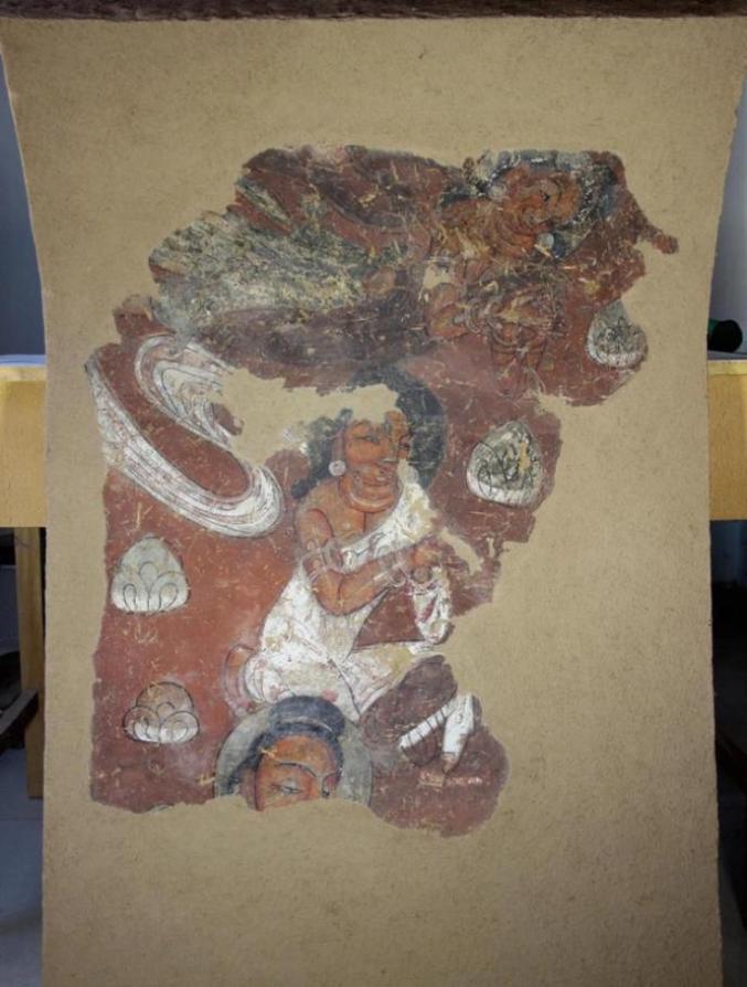 在天梯山石窟揭取修复的北凉弧形重层壁画。图片来源:新华社