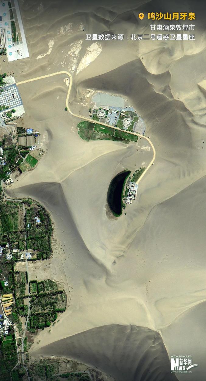 游客在甘肃省敦煌市鸣沙山月牙泉景区游览。新华社发(张晓亮摄)