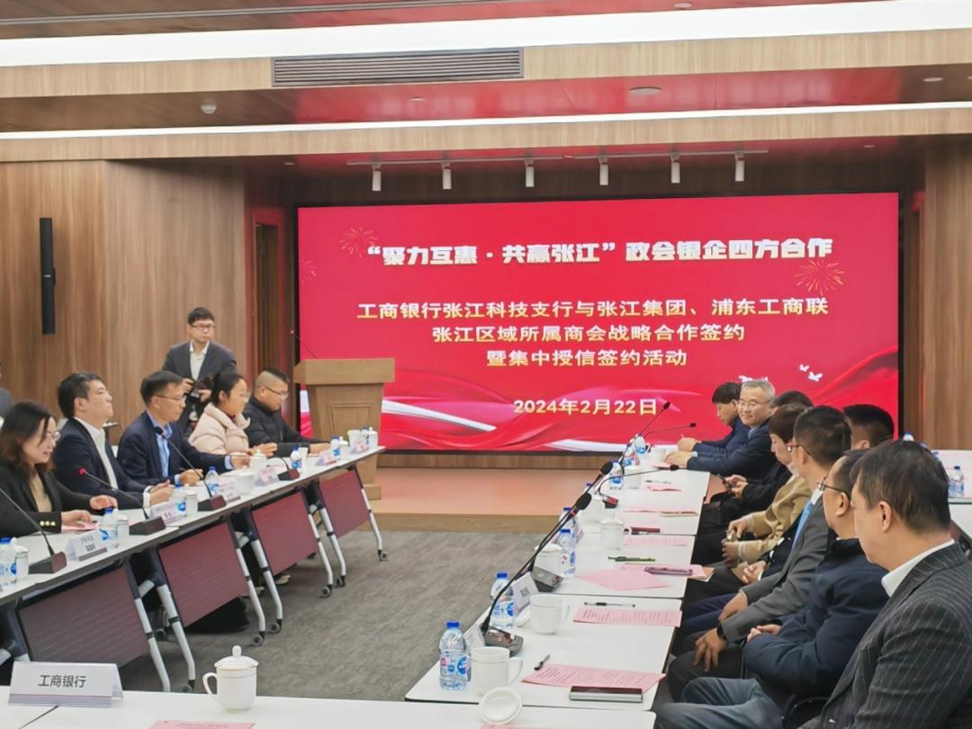 推进会上,工商银行张江科技支行与张江集团、浦东新区工商联张江区域所属商会(张江科学城商会、张江镇商会、张江人工智能商会)签订金融服务战略合作协议,并现场对张江地区3家民营企业集中授信合计3.5亿元。张江区域商会与工商银行张江科技支行建立战略合作机制,将进一步扩大信用融资规模、创新信用融资产品,为商会会员企业和张江区域民营企业提供更加精准、优质、便利的信用融资服务,预计年内工商银行科技支行将提供150亿元额度的专项信贷支持惠及张江区域中小微企业800多家。