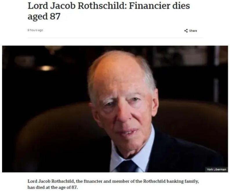 ●罗斯柴尔德家族当地时间2月26日发布声明称,英国金融家雅各布·罗斯柴尔德去世,终年87岁。