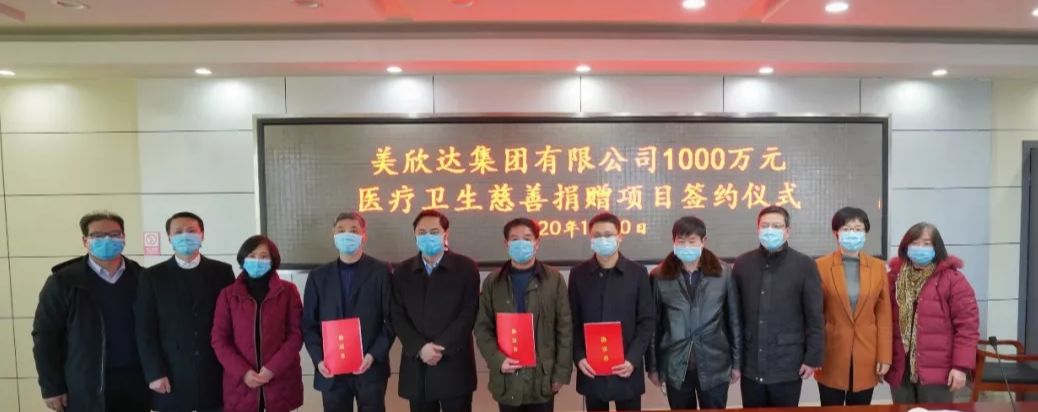 1月30日,美欣达集团与湖州市第一人民医院签订慈善捐赠项目协议书,捐赠1000万元人民币,用于防控疫情及医疗卫生慈善方面。2月3日,美欣达集团将全体上下爱心汇聚而成的48万元,第一时间送到防疫和疾控一线。“哪里最脏的活我们来揽,哪里最累的活我们来干,哪里有需要我们就出现在哪里!”美欣达集团董事会主席的话语掷地有声。