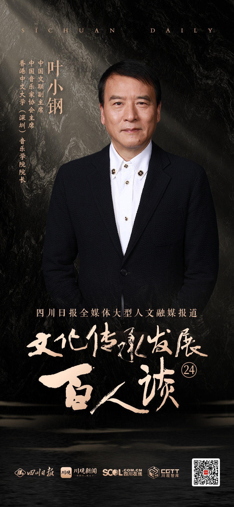 叶小钢,1955年出生,中国文联副主席、中国音乐家协会主席、香港中文大学(深圳)音乐学院院长、中央音乐学院教授。入选中共中央宣传部文化名家暨“四个一批”人才工程、享受国务院政府特殊津贴专家,著名作曲家、音乐教育家。