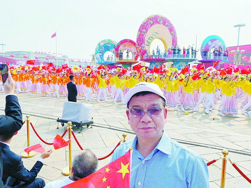 这位湖北人很激动地期待福建的花车从眼前经过。当“立德树人”的群众游行方阵经过时,他充满骄傲地说:“看到祖国的繁荣,需要培养更多的人才,深感我们教师的责任重大。”