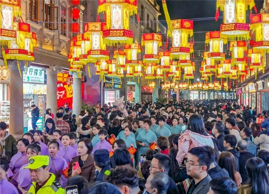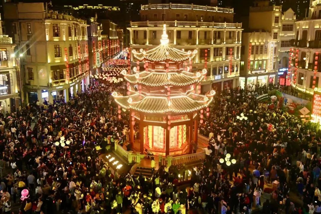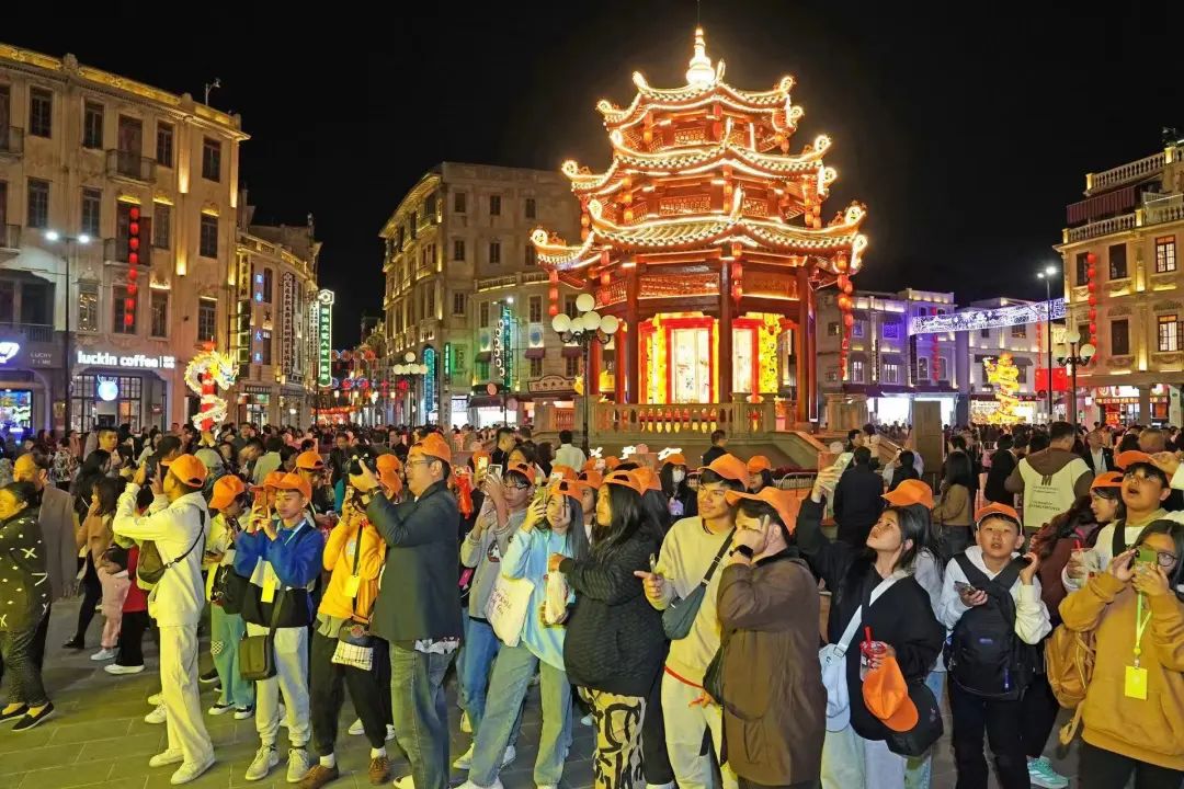 白天,花灯是色彩绚丽的装饰品,在阳光的照耀下熠熠生辉。夜幕降临后,花灯在夜色里更显璀璨。小公园国际元宵灯会的火热举办,为网红打卡点小公园锦上添花,增添浓烈的喜庆气氛,吸引八方宾客纷至沓来。据统计,正月十五至正月底,小公园开埠区核心街区客流量超133万人次。