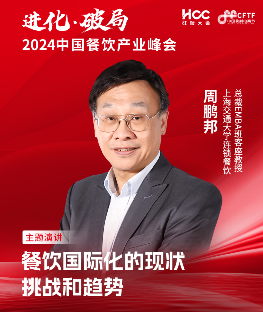 周鹏邦,CICG中餐出海研究院发起人,新加坡全球食材供应链联盟副秘书长,中国商业联合会亚太智慧零售产业联盟副秘书长,国家产业创新联盟预制菜专委会委员,IPCR预制菜研究院发起人,中国蔬菜协会乡村振兴委员会副主任,北大、清华、复旦、上海交大等多所大学客座教授。