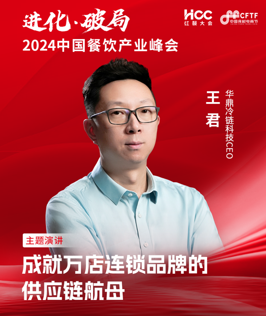 王君,华鼎冷链科技CEO,餐饮供应链领域专家。曾任职于阿里、美团、百度等互联网大厂,后进入百胜中国在餐饮供应链领域踏实耕耘、创新供应链模式,练就了独到的眼光和敏锐的市场嗅觉。创立了连锁餐饮企业一体化供应链服务的先河,推动国内餐饮供应链产业构建与完善,为多个国内外知名餐饮品牌提供采仓配一体化业务,赋能中国餐饮行业的创新服务模式。
