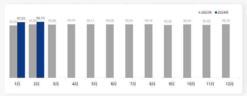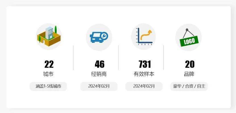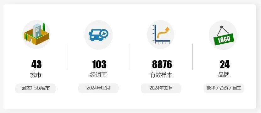 《报告》显示,2024年2月,汽车销售服务口碑指数为98.51分,环比上升0.85分,同比提升3.11分。本月数据覆盖了22个1~5线城市,46家经销商,20个品牌的731个有效样本量。