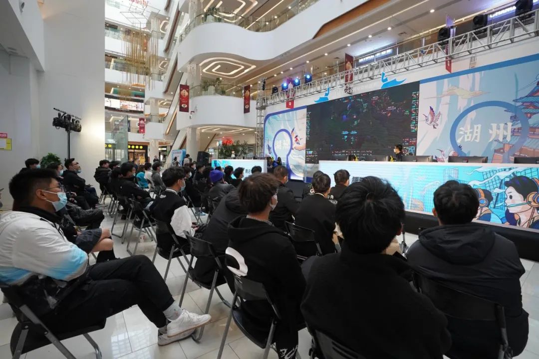 11月13日,湖州的大都汇城市生活广场,湖州区决赛在此地上演。隔着熙攘的人群就能听到场上的欢呼选手们战斗的激情。来到现场,有一位观众在广场门口激动的对《人民电竞》说:“在湖州,这样专业的赛事可不常见。”