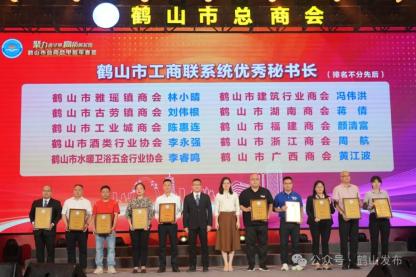 本次活动还向有关单位和个人颁发了“全国‘五好’县级工商联”“全省工商联系统先进集体”“广东‘千企帮千镇 万企兴万村’典型案例”“鹤山市工商联系统‘四好’商会”“鹤山市工商联系统先进商会”“2023年度鹤山市非公经济组织党委先进基层党组织”“2023年度鹤山市工商联系统‘乡村振兴典型单位’”“2023年度鹤山市工商联系统优秀秘书长”牌匾,向增补的鹤山市工商联第十三届执委会常委、执委颁发当选牌匾。