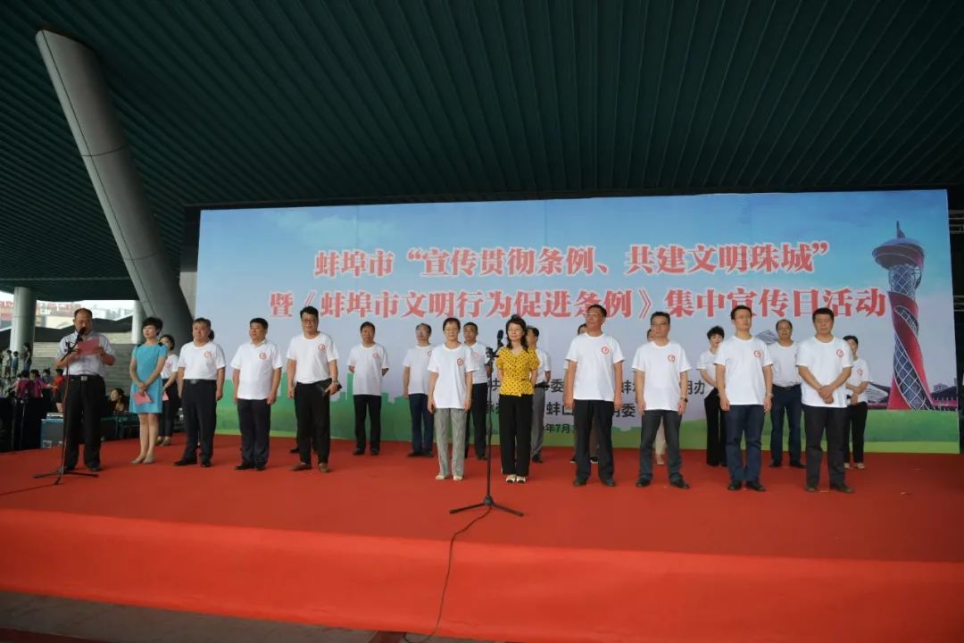 7月30日上午,蚌埠市“宣传贯彻条例、共建文明珠城”暨《蚌埠市文明行为促进条例》集中宣传日活动举行,市委常委、宣传部长谢兵,市人大常委会副主任赵同良,市政协副主席冯燕娴出席活动。
