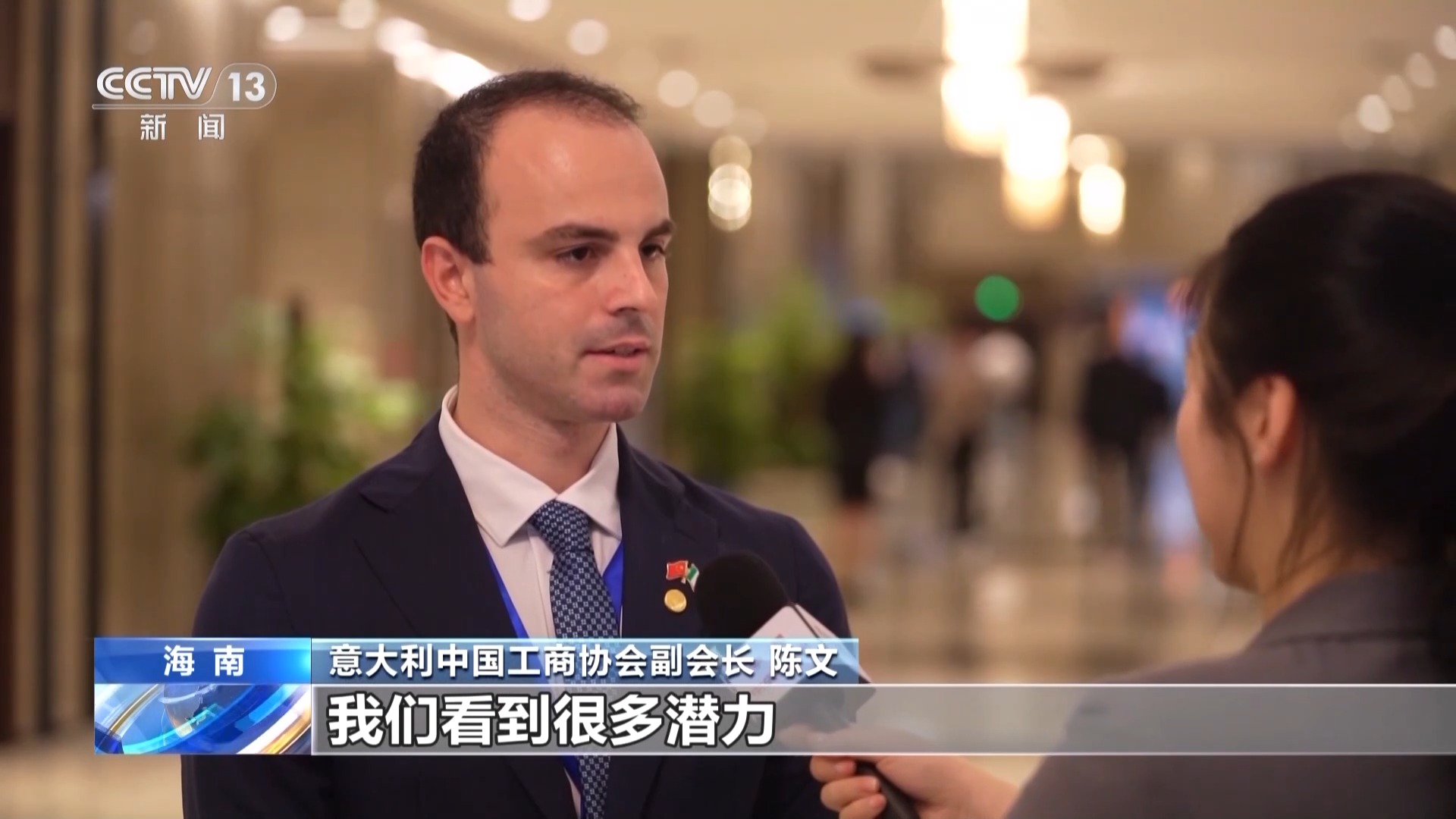 意大利中国工商协会副会长陈文:我们看到很多潜力,关于人工智能等新技术,这些新技术为我们意大利公司创造了新的机会。所以我们正在努力做的是让公司直接接触这些信息和政策,让他们可以更好地在海南投资。