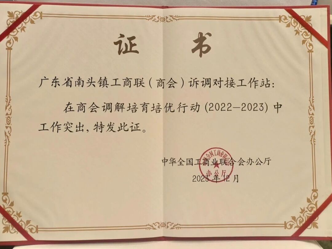 近日,全国工商联商会调解观摩交流会在安徽合肥举行。会上发布《商会调解年度报告(2023)》,中山市南头镇工商联(商会)获评“商会调解培育培优行动中工作突出的商会调解组织”,这也是全国唯一基层镇街商会获此殊荣。