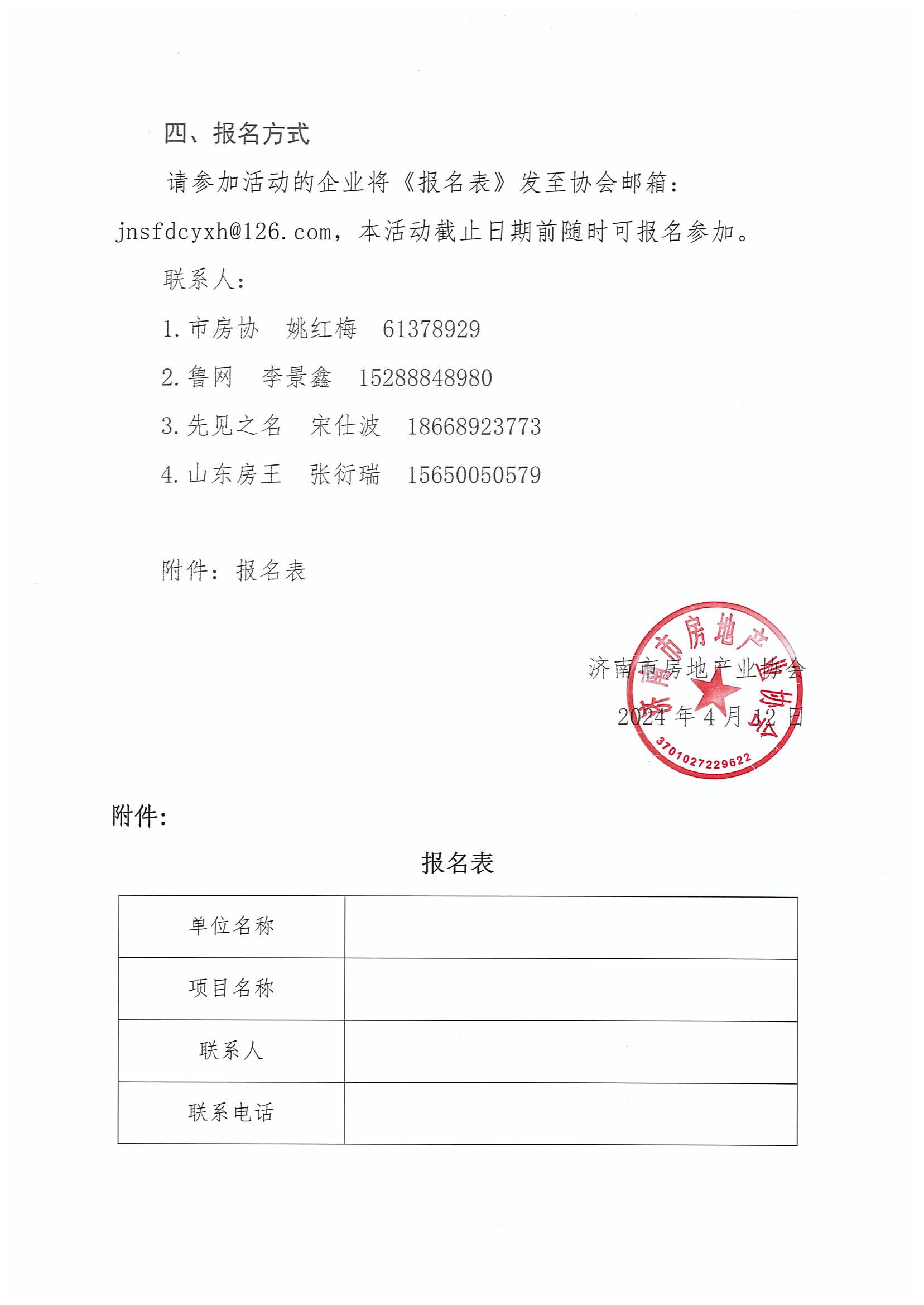 请参加活动的企业将《报名表》发至协会邮箱:jnsfdcyxh@126.com,本活动截止日期前随时可报名参加。
