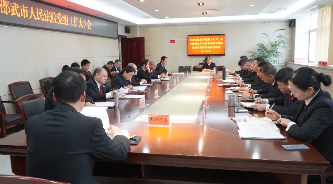4月10日下午,邵武法院召开党组(扩大)会,传达贯彻南平中院与邵武法院数据会商会精神,院领导班子成员、审执业务部门正副职参会,党组书记、院长姚域斌主持会议并讲话。