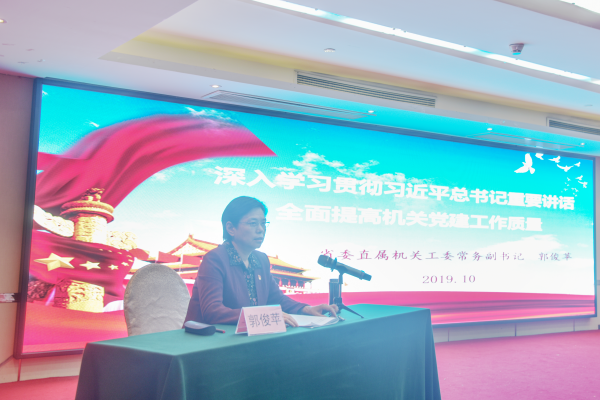 省委直属机关工委常务副书记郭俊苹为培训班学员作了题为《深入学习贯彻习近平总书记重要讲话,全面提高机关党建工作质量》的辅导报告。她指出,7月9日,党中央召开中央和国家机关党的建设工作会议,习近平总书记出席会议并发表重要讲话,这在我们党的历史上还是首次,总书记讲话精辟论述了加强和改进中央和国家机关党的建设的重大意义,深刻阐明了新形势下中央和国家机关党的建设的使命任务、重点工作、关键举措,对加强和改进中央和国家机关党的建设作出全面部署。习近平总书记重要讲话科学回答了机关党的建设一系列重大理论和实践问题,具有很强的时代性、政治性、思想性、指导性,是指导推进党的建设新的伟大工程的纲领性文献,为我们做好机关党建工作指明了努力方向、提供了根本遵循。9月5日,省委召开省直机关党的建设工作会议,省委书记蒋超良出席会议并讲话,对省直机关党建工作进行了全面部署,机关党的建设迎来了前所未有的发展机遇。她要求,省直机关各级党组织和广大党员要把学习贯彻习近平总书记的重要讲话精神和省直机关党的建设工作会议精神作为当前的一项重要政治任务,抓紧抓实抓好。她强调,一是要提高政治站位,切实把思想行动统一到习近平总书记重要讲话精神上来,按照省委的安排部署,切实扛起推进机关党的建设的政治责任;二是要突出工作重点,推动机关党建工作各项任务有效落实,以政治建设为统领、带头做到“两个维护”,以理论武装为基础、打牢思想建党根基,以提升组织力为重点、锻造坚强有力的基层党组织,以整治形式主义官僚主义为突破、持之以恒正风肃纪;三是要创新工作方法,不断提高统一领导机关党建工作的能力。