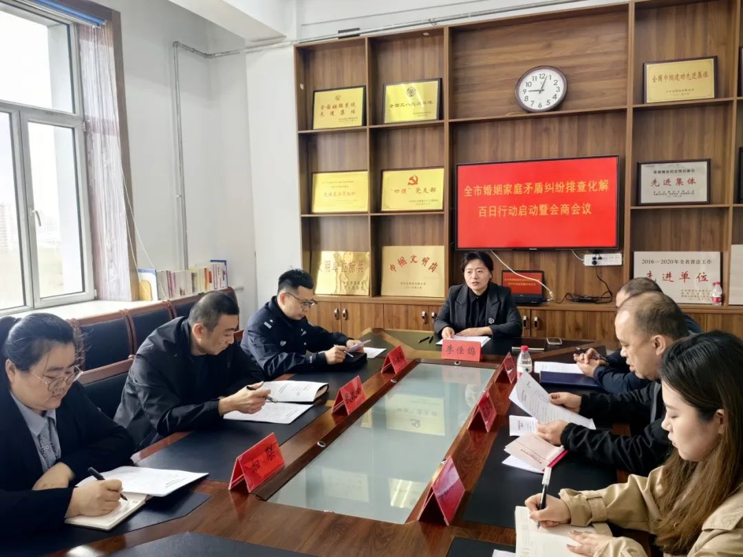 为深入推进婚姻家庭矛盾纠纷排查化解工作,有效预防和化解婚姻家庭矛盾纠纷,促进平安绥化建设,确保百日行动取得实效,4月25日,绥化市妇联召开了全市婚姻家庭矛盾纠纷排查化解百日行动启动暨会商会。市妇联、市委政法委、市公安局、市民政局、市司法局等部门有关负责人参加了会议。