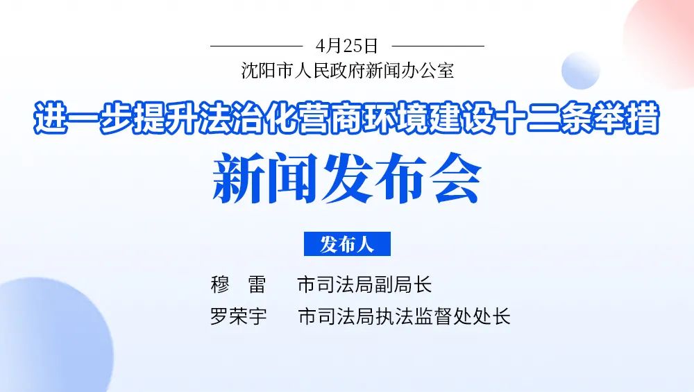 12条!沈阳出台进一步提升法治化营商环境建设新举措!