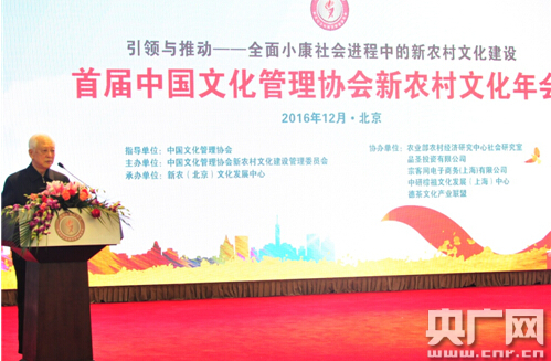 央广网北京12月27日消息(记者 于闻)首届中国文化管理协会新农村文化年会暨主题论坛12月25日在北京召开。年会由中国文化管理协会新农村文化建设管理委员会主办,会议的主题是“引领与推动----全面小康社会进程中的新农村文化建设”。