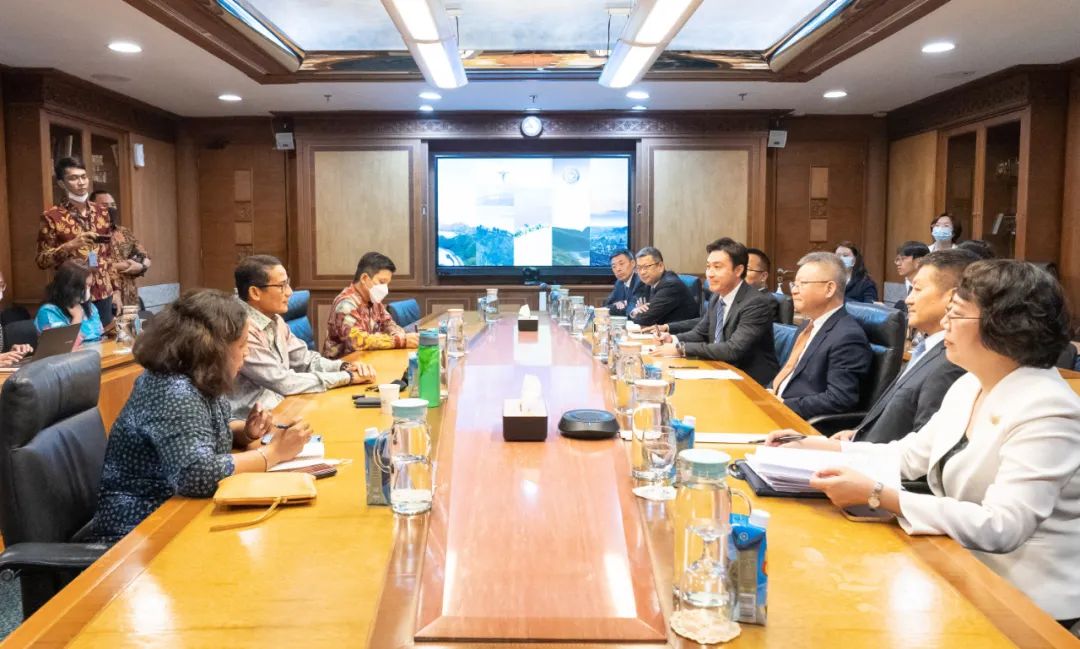2月17日,印尼雅加达,沈晓明会晤印尼海洋与投资统筹部部长卢胡特·宾萨·班查伊丹。