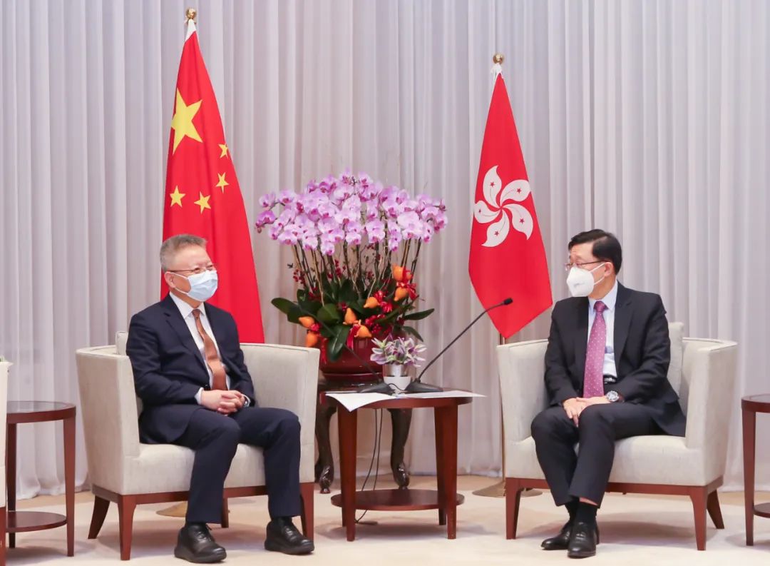 2月15日,沈晓明在香港会晤香港特别行政区行政长官李家超。