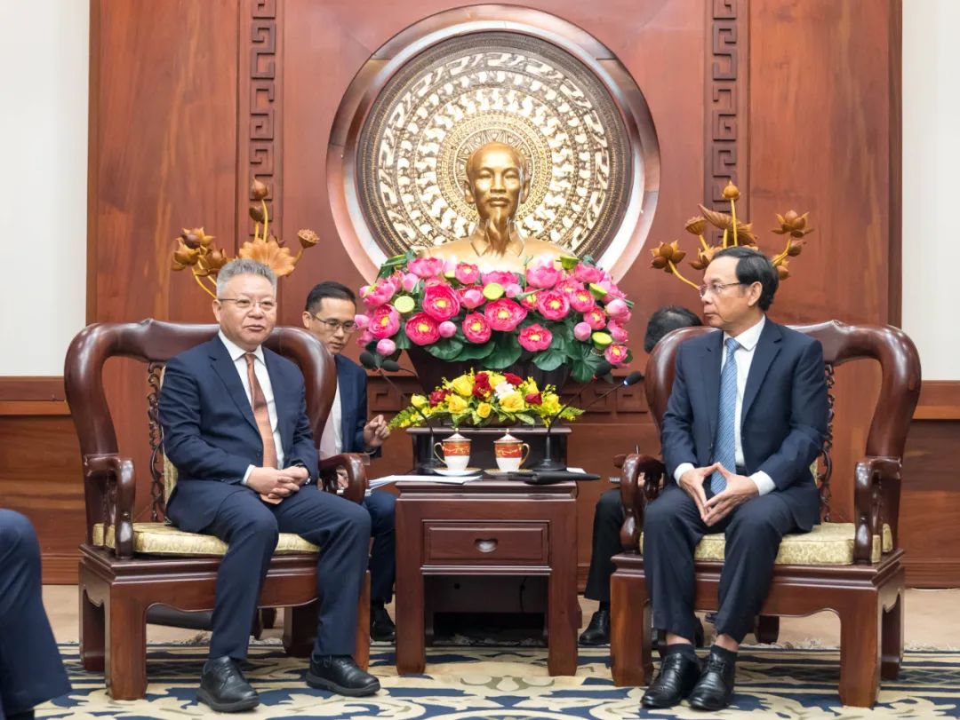 沈晓明介绍了海南全面深化改革开放和海南自由贸易港建设情况。他表示,胡志明市是越南最重要的经济城市,希望与胡志明市重启空中直飞航线,加强热带农业、种业、数字经济、生物制药、绿色发展等产业合作。