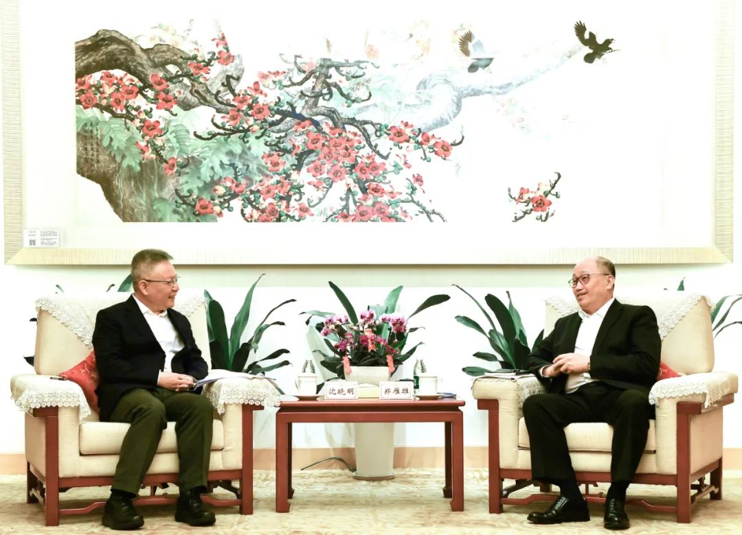 2月15日,沈晓明在香港与新世界集团董事长郑家纯座谈交流。