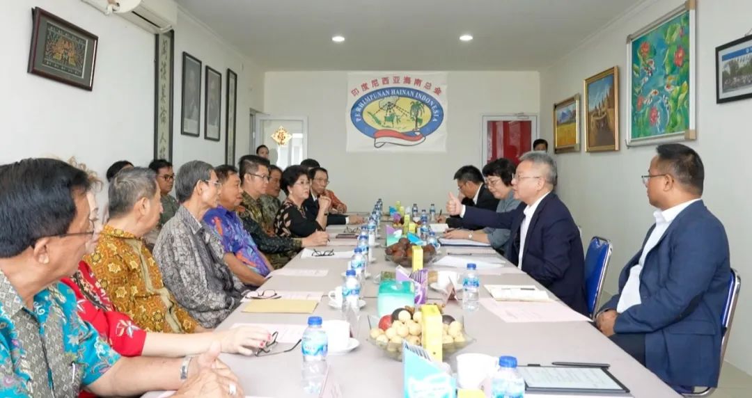 2月18日,沈晓明在印尼雅加达走访印尼海南总会会馆并座谈交流,与琼籍侨胞共叙乡谊。