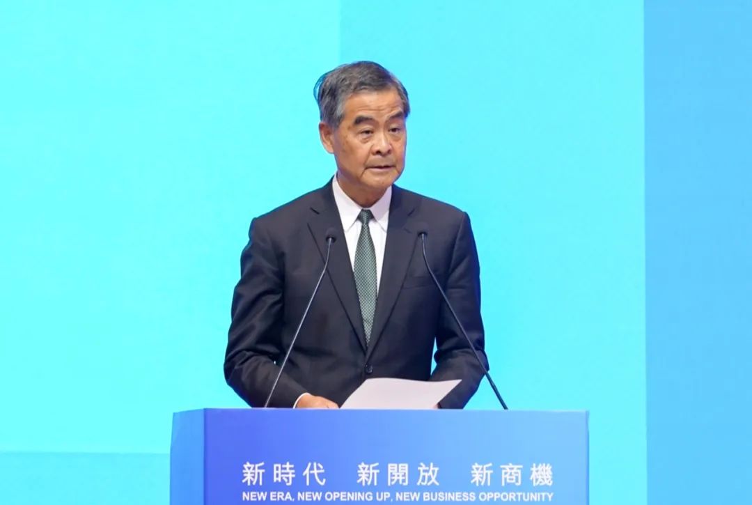2月15日,全国政协副主席梁振英出席在香港会展中心举行的海南自由贸易港推介会并致辞。
