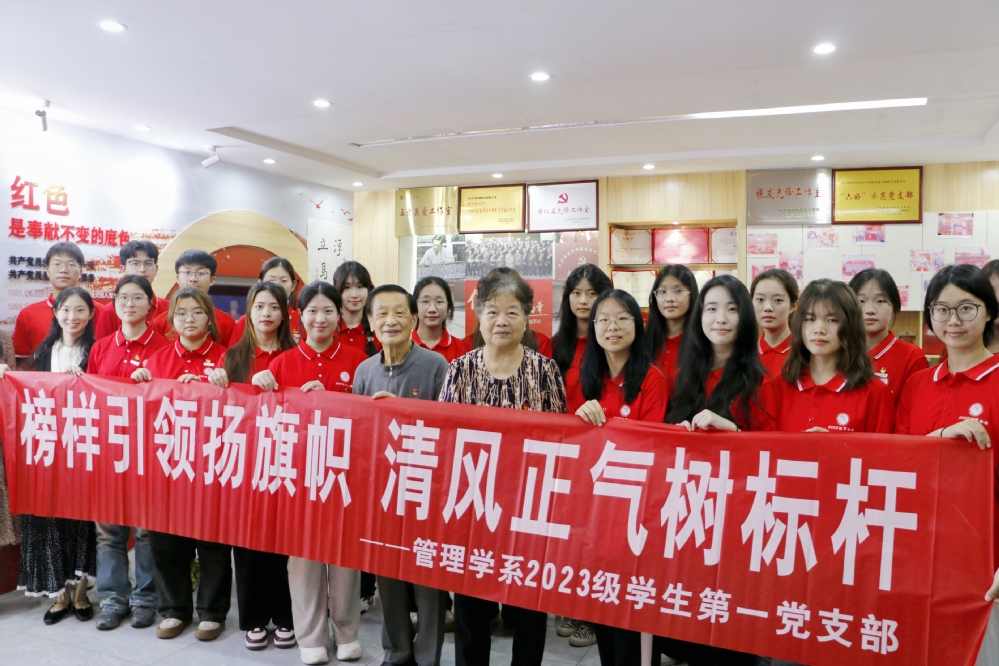 4月24日下午,我系2023级学生第一党支部在党支部书记林晓玲的带领下,前往黄以孟党建工作室开展“榜样引领扬旗帜,清风正气树标杆”主题党日活动。福建省优秀共产党员、福建师范大学原总务处处长黄以孟老师、党建工作室主任柯丽娟热情接待了师生一行。
