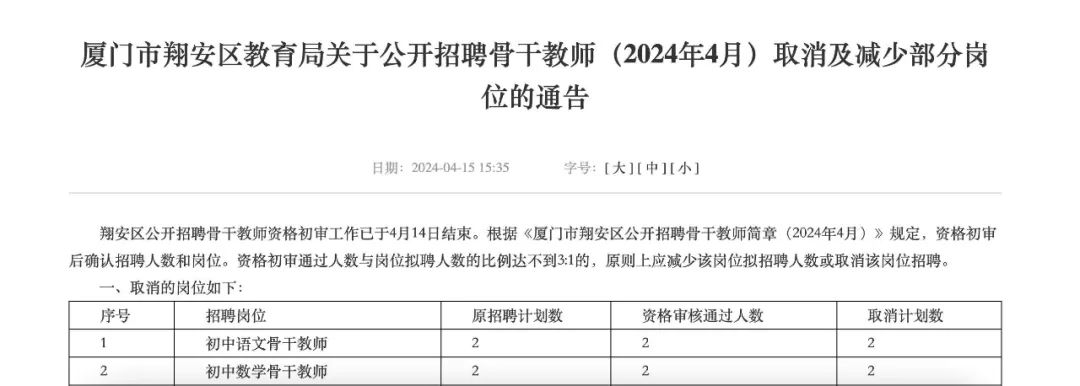 ●厦门教师招聘疑因取消编制无人报考,只能取消招聘计划引发关注,有关部门26日回复:依简章规定进行。